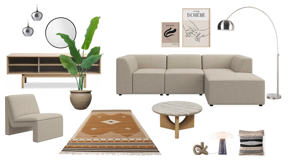 Ligesom i den nordiske stil spiller træ og lærred en stor rolle, men her blandes det med eksotiske elementer som drømmefangere, indiske lanterner og marokkanske tæpper.